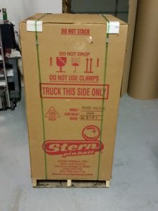 The second part of this equation is the pallet size. Pinball manufactures use a 31X31 pallet so they can get 3 wide in semi-trucks and/or containers heading overseas. This means the size of the pallet is the same size of the box. Why does this matter? Well, this means the various other freight traveling with your game can hit your game since the pallet and the games box are the same size. Transferring the game over to a standard 40X48 pallet allows more space around your game to help minimize the risk of other freight or forklift drivers damaging it. It also greatly increases the inability of the freight to tip over. A pinball machine on a 40X48 pallet is much more planted and creates a larger footprint. A 31X31 can tip over quite easily if the truck hits a curb and it is not strapped in to the wall of the trailer. Once that game gets loaded on the trailer at our dock, it is mandatory that we have the driver strap that game in. Does it stay that way from truck to truck? We would hope so, but honestly once it leaves our dock it is no longer under our control. We have no idea as it goes from terminal to terminal and truck to truck. One thing is certain though, if it's not strapped in and it's on a 40X48 pallet it's much harder to tip over! This pallet upsizing service does change the freight cost because it puts it into the next freight class category due to its larger footprint. This service including the 40X48 pallet is $45.