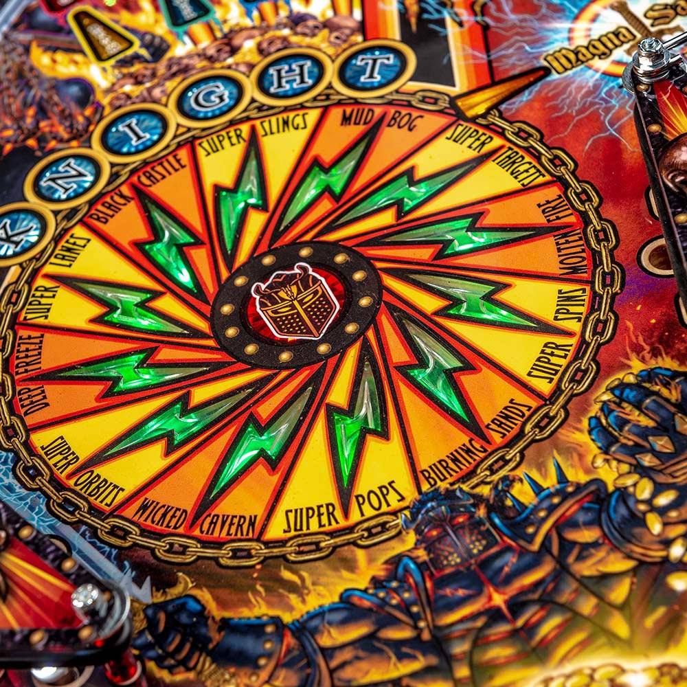 All models include the distinct “Magna-Save”, a player-controlled magnet used to prevent a ball from draining, and timed resetting drop targets. In addition, Black Knight: Sword of Rage features a legacy sound package composed and performed by Scott Ian of Anthrax with Brendon Small, adrenalizing the audio experience for players on their journey, and custom speech by Ed Robertson of Barenaked Ladies.