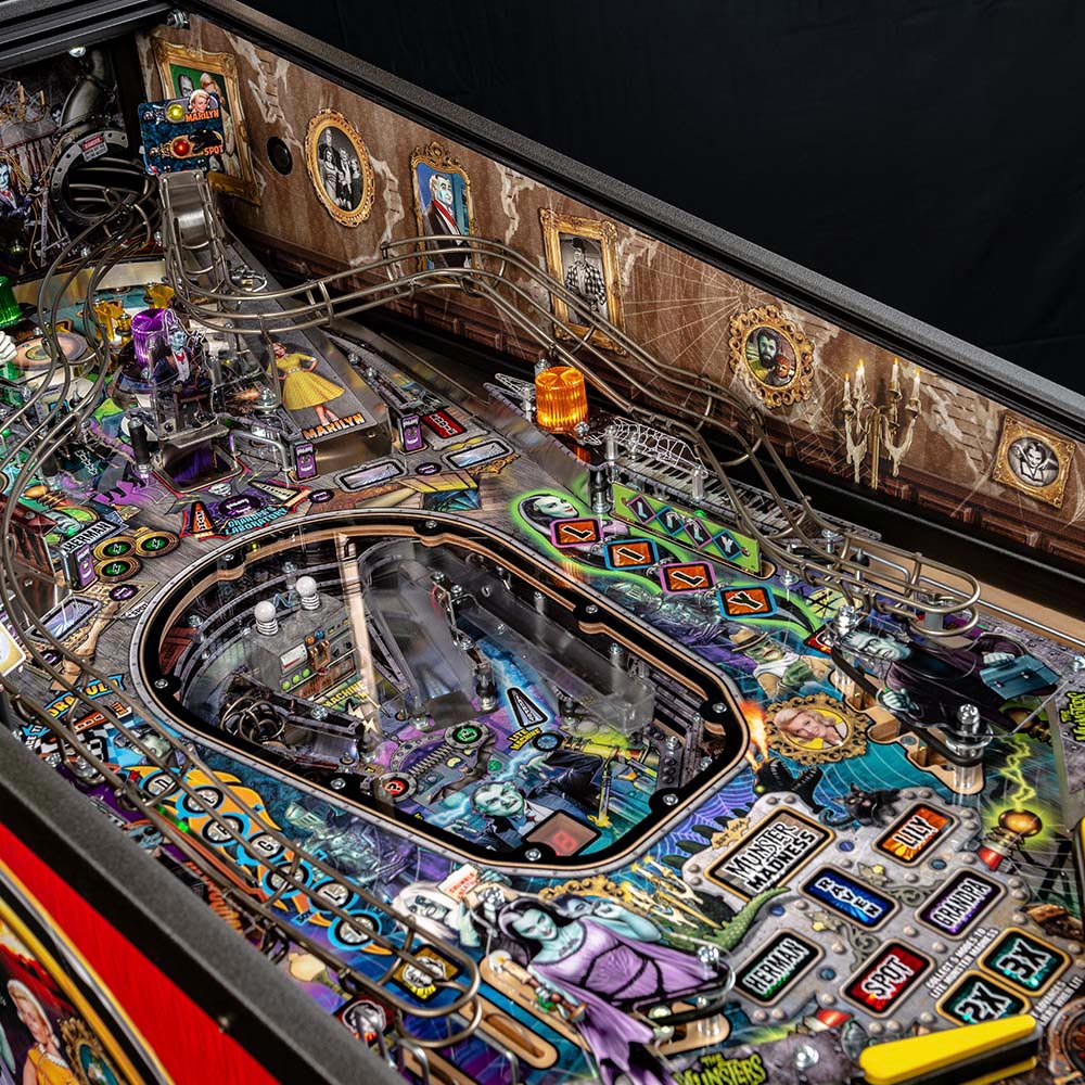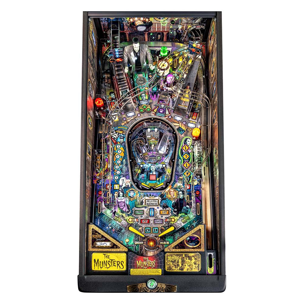 Players will be transported to 1313 Mockingbird Lane, joining the entire Munsters family on this haunted pinball adventure. Featuring Herman, Raven, Lily, Spot and Grandpa, players will work their way towards Munster Madness in this frightfully funny and action-packed pinball world under glass. The Munsters pinball machines will be available in Pro, Premium, and Limited Edition models. “The Munsters are iconic and timeless, and it was time to create a pinball experience around this freaky-fun family. With beautiful artwork inspired by the supernatural family, this theme is perfect for a pinball machine,” said Gary Stern, Chairman and CEO of Stern Pinball, Inc. Stern’s The Munsters Pro, Premium, and Limited Edition models feature stunning and distinctive hand-drawn art. Each game features a custom sculpted Herman bash toy with magnetized ball catch, highlighting Herman multiball. In addition, all models include a pop-up Spot bash toy hidden under the left ramp, a custom sculpted Drag-U-La toy car featured near a left shooter lane kicker, as well as a metal turn-around, flip-up ramp. The Premium and Limited Edition models both feature Grandpa’s laboratory, a lower playfield that features 2 mini flippers, 2 ramps, a Grandpa bash target, a digital number display, and a multiball feature. The Premium model features an exclusive black and white custom art package in homage to classic black and white TV. The Limited Edition – only 500 units globally – includes additional unique features such as an exclusive mirrored backglass, anti-reflection pinball glass, shaker motor, exclusive custom art blades, a custom autographed bottom arch, a sequentially numbered plaque, and exclusive custom casket-themed cabinet artwork. Complementing the immersive theme and exciting gameplay experience, Stern Pinball’s powerful SPIKE™ electronics hardware system enables high-definition graphics and innovative animations on the high-definition video display. SPIKE™ reduces system complexity and energy usage resulting in enhanced reliability and simplified servicing. The state-of-the-art electronic system also powers a high-fidelity 3-channel audio system that is three times more powerful than audio systems of previous generations.