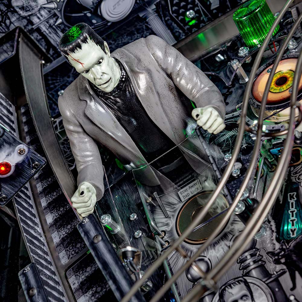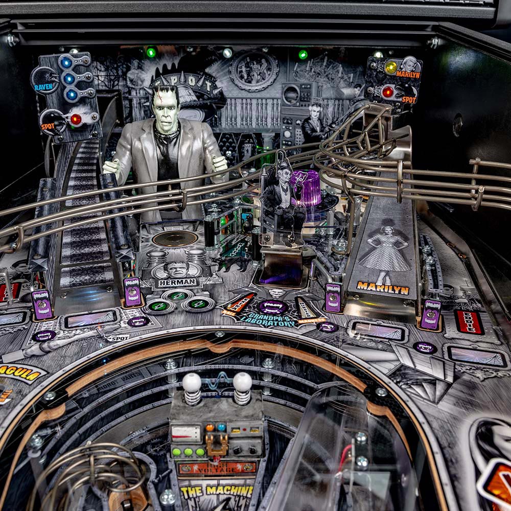 Players will be transported to 1313 Mockingbird Lane, joining the entire Munsters family on this haunted pinball adventure. Featuring Herman, Raven, Lily, Spot and Grandpa, players will work their way towards Munster Madness in this frightfully funny and action-packed pinball world under glass. The Munsters pinball machines will be available in Pro, Premium, and Limited Edition models. “The Munsters are iconic and timeless, and it was time to create a pinball experience around this freaky-fun family. With beautiful artwork inspired by the supernatural family, this theme is perfect for a pinball machine,” said Gary Stern, Chairman and CEO of Stern Pinball, Inc. Stern’s The Munsters Pro, Premium, and Limited Edition models feature stunning and distinctive hand-drawn art. Each game features a custom sculpted Herman bash toy with magnetized ball catch, highlighting Herman multiball. In addition, all models include a pop-up Spot bash toy hidden under the left ramp, a custom sculpted Drag-U-La toy car featured near a left shooter lane kicker, as well as a metal turn-around, flip-up ramp. The Premium and Limited Edition models both feature Grandpa’s laboratory, a lower playfield that features 2 mini flippers, 2 ramps, a Grandpa bash target, a digital number display, and a multiball feature. The Premium model features an exclusive black and white custom art package in homage to classic black and white TV. The Limited Edition – only 500 units globally – includes additional unique features such as an exclusive mirrored backglass, anti-reflection pinball glass, shaker motor, exclusive custom art blades, a custom autographed bottom arch, a sequentially numbered plaque, and exclusive custom casket-themed cabinet artwork. Complementing the immersive theme and exciting gameplay experience, Stern Pinball’s powerful SPIKE™ electronics hardware system enables high-definition graphics and innovative animations on the high-definition video display. SPIKE™ reduces system complexity and energy usage resulting in enhanced reliability and simplified servicing. The state-of-the-art electronic system also powers a high-fidelity 3-channel audio system that is three times more powerful than audio systems of previous generations.
